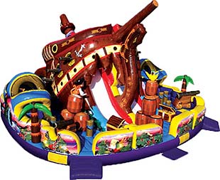 The biggest and most phantastic pirate adventure awaits! This gigantic obstacle course features a 23 foot slide. There's also real-life barrels, cannons, treasure chests, and more. Crawl through tunnels and obstacles as you race for the finish!