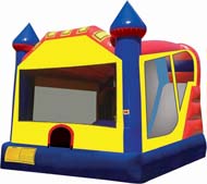 a large jump area, climbing ladder, slide, TWO basketball hoops, and a TWISTER panel floor for hours of non-stop fun!