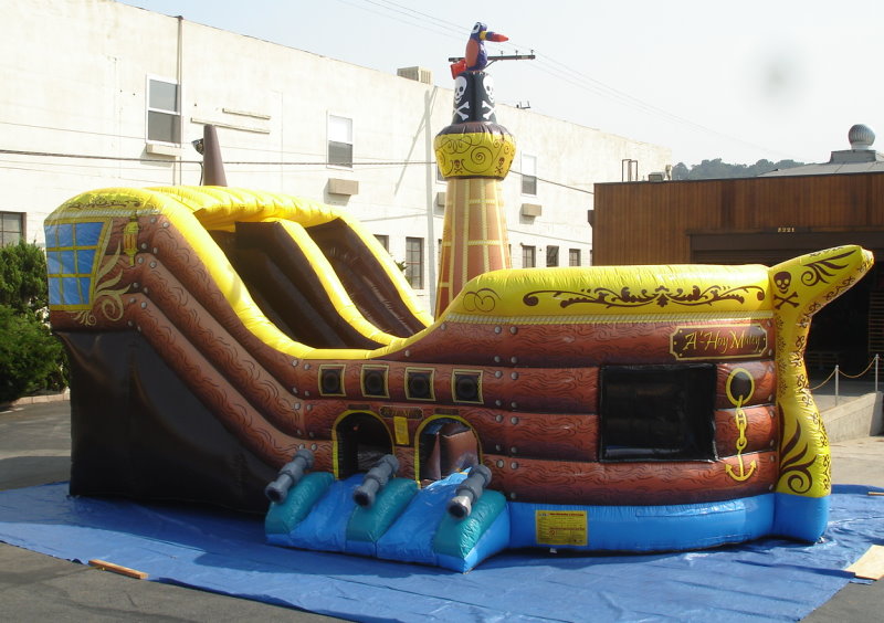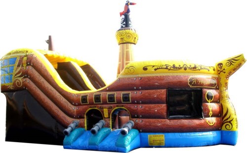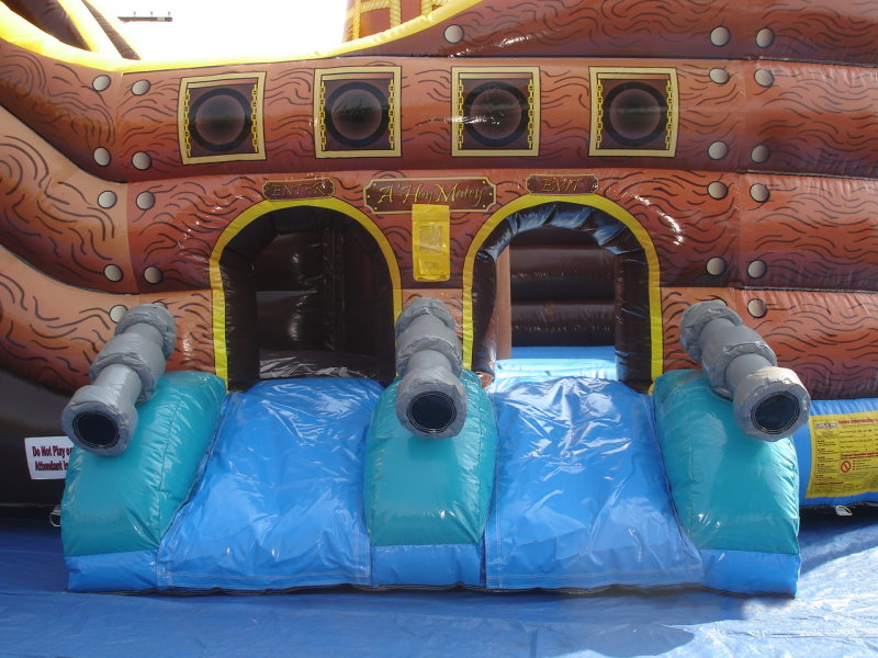 You have to see this to believe it! A real Pirate Ship with a HUGE SLIDE, CLIMBER, OBSTACLES, BIG JUMP AREA, mast, cannons, and more....